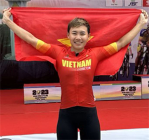 Vân động viên Nguyễn Thị Thật sẽ thi đấu ở nội dung xuất phát đồng hàng của xe đạp đường trường nữ.
