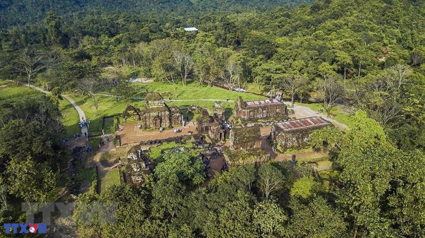 Khu đền tháp Mỹ Sơn là quần thể di tích đền tháp Chăm Pa nằm ở xã Duy Phú, huyện Duy Xuyên, tỉnh Quảng Nam. Năm 2019 là tròn 20 năm, Khu đền tháp Mỹ Sơn được UNESCO công nhận là Di sản văn hóa thế giới.(Ảnh: TTXVN)