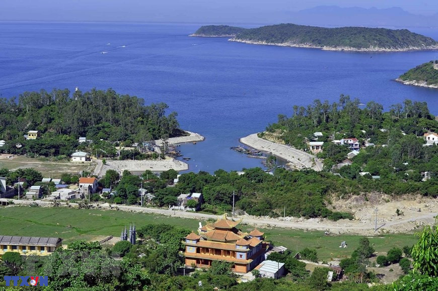 Quang cảnh khu âu thuyền, chùa Hải Tạng tại Cù lao Chàm (xã đảo Tân Hiệp, thành phố Hội An, tỉnh Quảng Nam) nhìn từ trên cao. (Ảnh: TTXVN)