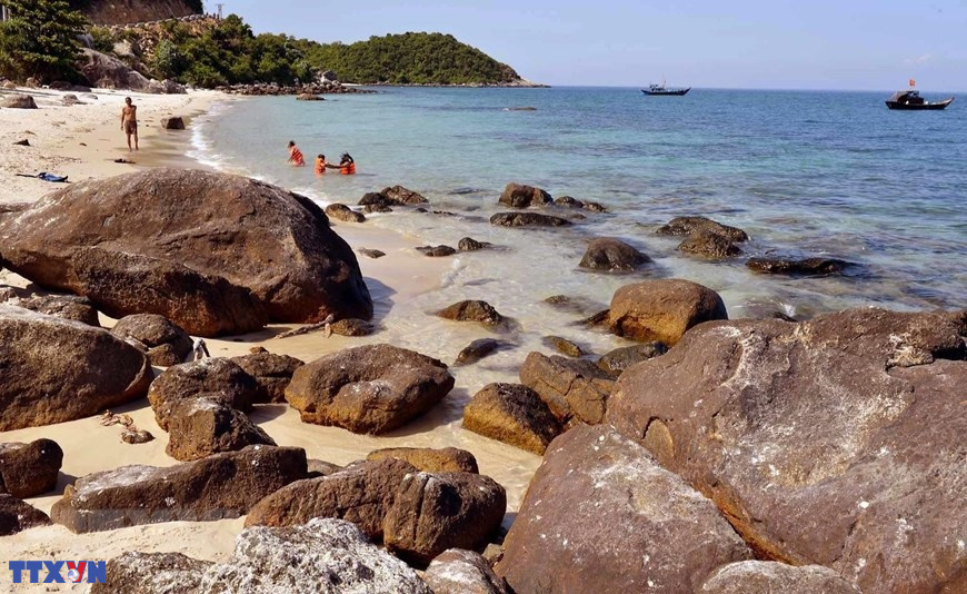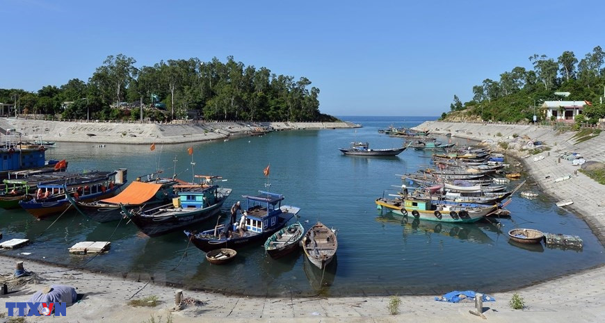 Âu Thuyền ở Cù Lao Chàm nằm giữa khu vực Bãi Làng và Bãi Ông, nơi neo đậu an toàn cho tàu thuyền khắp nơi vào mỗi khi có gió bão. (Ảnh: TTXVN)