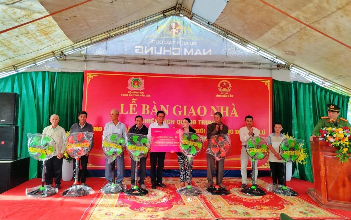 Công an tỉnh Đắk Lắk tặng đồ gia dụng cho hộ dân trong “Chiến dịch Quang Trung” (10/1/2026). Ảnh: TTXVN phát