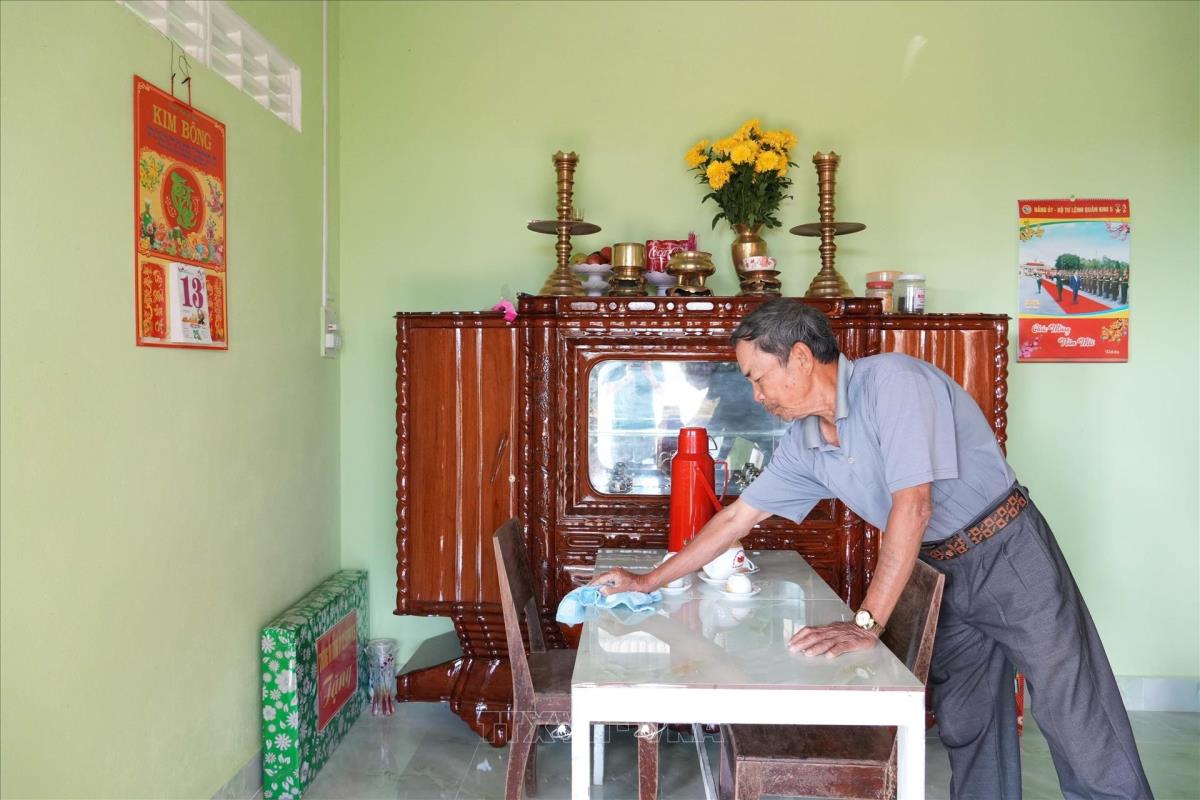 Người dân xã Hòa Thịnh, tỉnh Đắk Lắk, dọn dẹp nhà mới bàn giao trong “Chiến dịch Quang Trung” (14/1/2026). Ảnh: Tuấn Anh - TTXVN