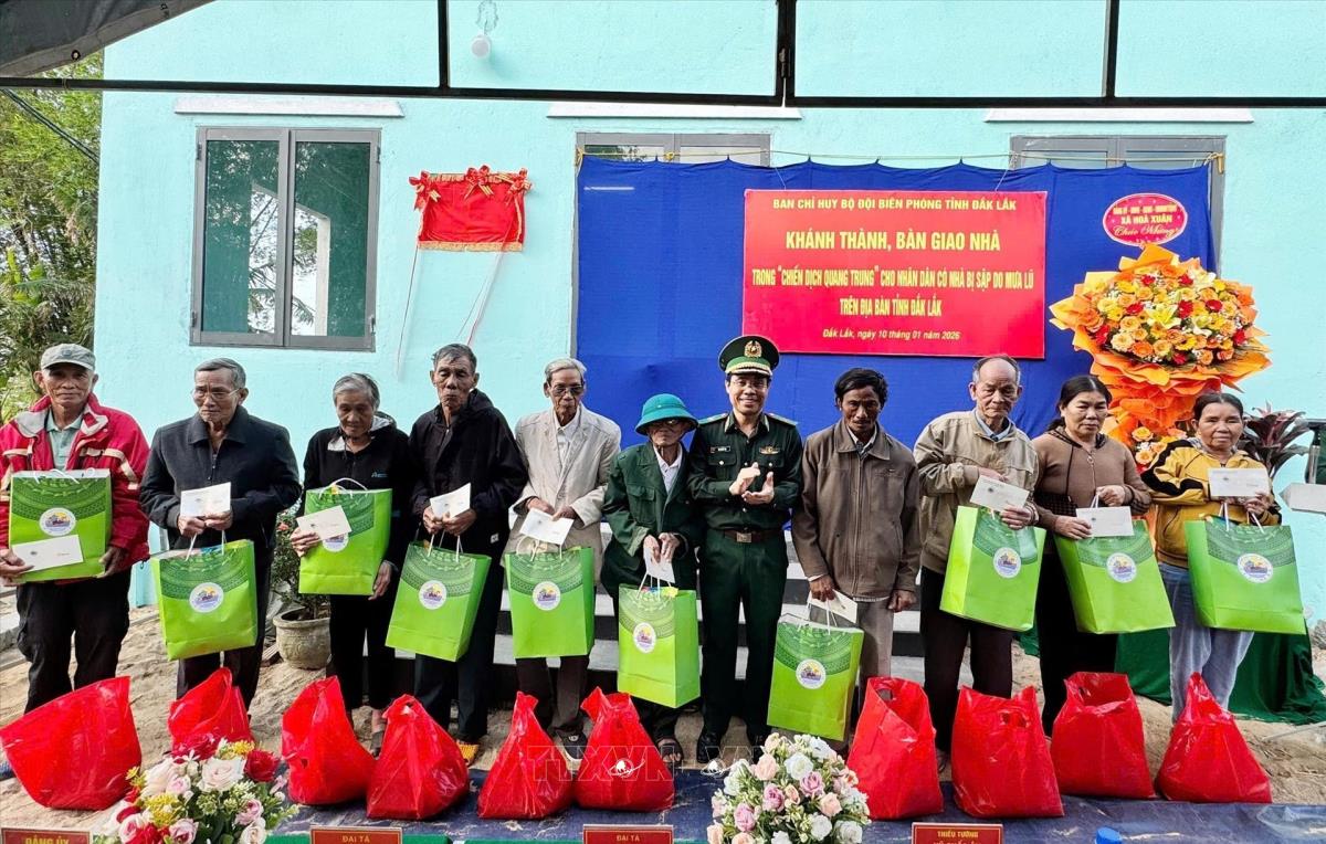 Đắk Lắk (TTXVN 14/1/2026) “Chiến dịch Quang Trung” trên địa bàn tỉnh Đắk Lắk đã cơ bản hoàn thành, trong đó, số nhà hư hỏng nặng cần sửa chữa đã hoàn thành 892/892; số nhà ở bị sập, đổ, lũ cuốn trôi phải xây dựng lại là 606 nhà, đã được xây dựng hoàn thành 529/606 nhà. Số nhà đang tiếp tục thi công là 77/606 căn, dự kiến sẽ hoàn thành vào ngày 15/1/2026 (trong đó 16 nhà xây dựng trong Khu tái định cư dự kiến bàn giao vào ngày 19/1).
