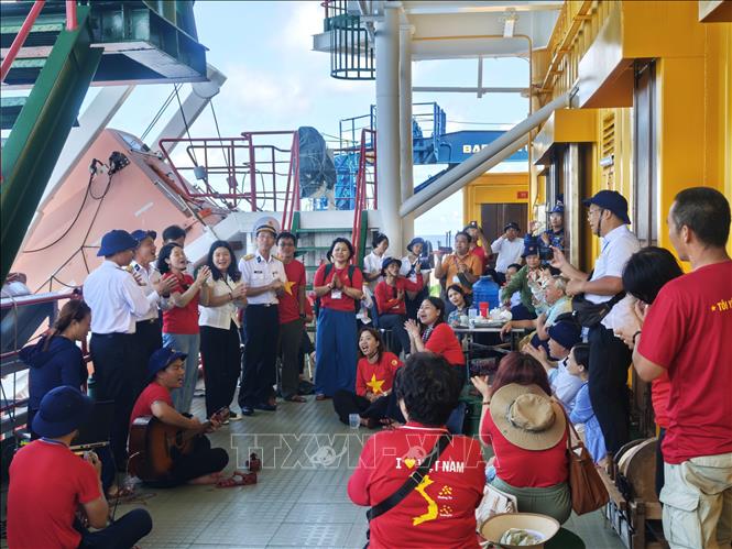 Hà Nội (TTXVN 26/4/2025) Ngày 26/4, tại Khánh Hòa, trên 60 kiều bào về từ 24 quốc gia và vùng lãnh thổ trên thế giới đã kết thúc chương trình Đoàn kiều bào thăm quân và dân huyện đảo Trường Sa và Nhà giàn DK1, trên “Chuyến tàu Đại đoàn kết”, từ ngày 18 - 26/4/2025.