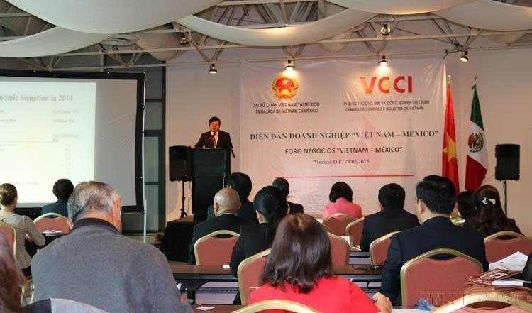 Diễn đàn doanh nghiệp Việt Nam - Mexico do Đại sứ quán Việt Nam, Phòng Thương mại và Công nghiệp Việt Nam phối hợp với Hội đồng Doanh nghiệp Ngoại thương, Đầu tư và Công nghệ Mexico (COMCE) tổ chức (29/05/2015). Ảnh: Việt Hòa - TTXVN