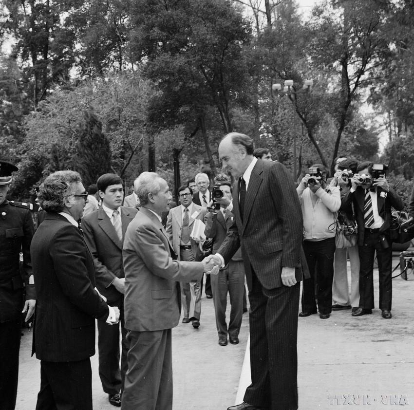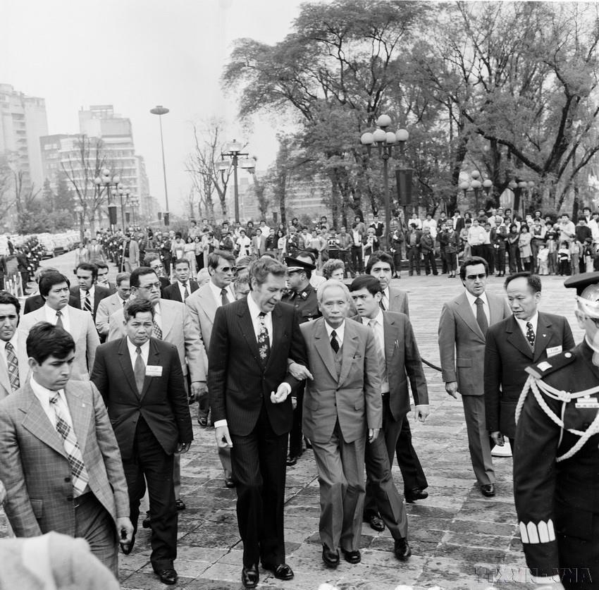 Tổng thống Mexico José López Portillo đón Thủ tướng Phạm Văn Đồng trong chuyến thăm Mexico từ ngày 12-13/9/1979. Ảnh: Xuân Lâm - TTXVN