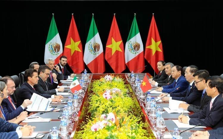 Trong khuôn khổ Tuần lễ Cấp cao APEC 2017, chiều 9/11/2017, tại Đà Nẵng, Chủ tịch nước Trần Đại Quang gặp song phương Tổng thống Mexico Enrique Peña Nieto. Ảnh: TTXVN