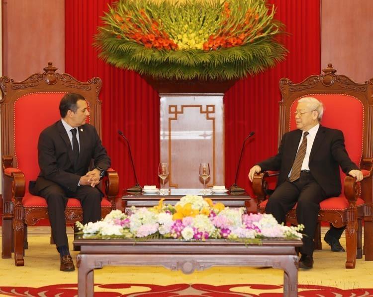 Tổng Bí thư Nguyễn Phú Trọng tiếp Chủ tịch Thượng viện Mexico Ernesto Cordero Arroyo nhân dự Hội nghị thường niên lần thứ 26 Diễn đàn Nghị viện Châu Á- Thái Bình Dương ( APPF - 26 ) tại Việt Nam (20/1/2018). Ảnh: Trí Dũng - TTXVN
