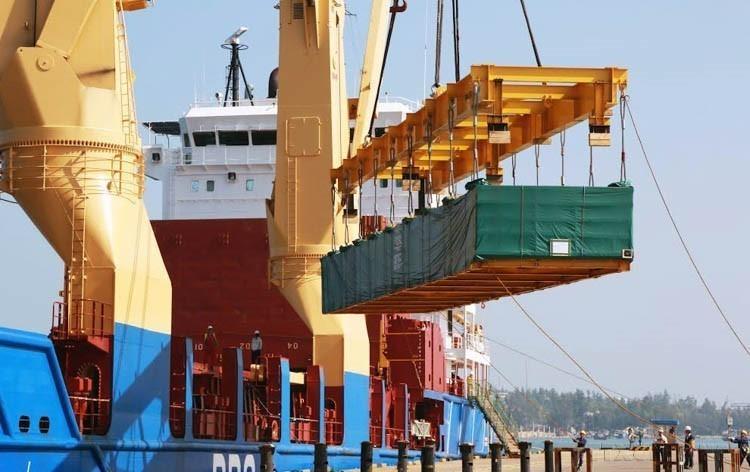 Nhà máy HRSG thuộc Công ty Công nghiệp nặng Doosan Vina tại Khu kinh tế Dung Quất (Quảng Ngãi) xuất khẩu 1.418 tấn linh kiện lò hơi thu hồi nhiệt đến Nhà máy nhiệt điện Intergent ở bang San Luis Potosi của Mexico trong những ngày đầu năm 2014. Ảnh: Thanh Long - TTXVN