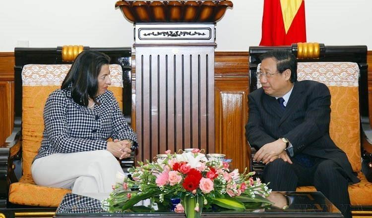 Phó Thủ tướng, Bộ trưởng Ngoại giao Phạm Gia Khiêm tiếp Thứ trưởng Bộ Ngoại giao Mexico Lourdes Aranda bezaury (Hà Nội, 25/4/2008). Ảnh: Thống Nhất - TTXVN