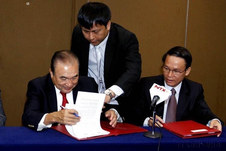Tổng giám đốc TTXVN Nguyễn Đức Lợi (bên phải) và Tổng Giám đốc Hãng thông tấn nhà nước Mexico NOTIMEX Alejandro Ramos ký Thỏa thuận hợp tác song phương giai đoạn 2014-2015 (Mexico, 9/6/2014). Ảnh: TTXVN
