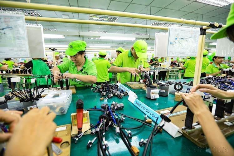 Công ty TNHH Bandai Việt Nam (Hòa Bình) là doanh nghiệp FDI với 100% vốn đầu tư của Nhật Bản chuyên sản xuất cụm dây dẫn đèn cho các hãng ô tô cung cấp đi thị trường Mexico, Nhật Bản, Mỹ, Pháp. Ảnh: Trọng Đạt - TTXVN