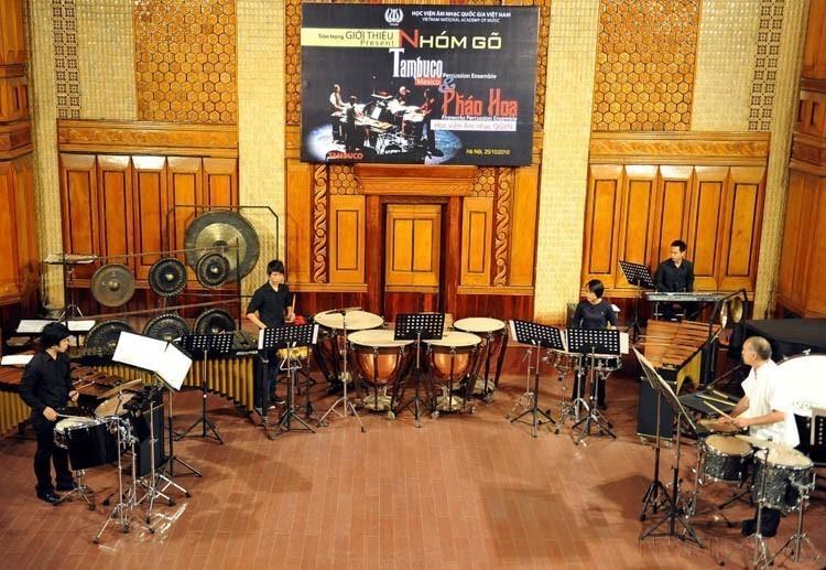 Thành viên nhóm gõ Tambuco của Mexico biểu diễn cùng với nhóm gõ Pháo hoa của Học viện Âm nhạc Quốc gia Việt Nam, trong khuôn khổ giao lưu trao đổi, hợp tác Văn hóa giữa hai nước (Hà Nội, 25/10/2010). Ảnh: Thanh Hà - TTXVN