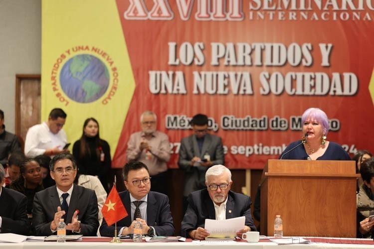 Nhận lời mời của đảng Lao động Mexico (PT), Đoàn đại biểu Đảng Cộng sản Việt Nam do đồng chí Lê Quốc Minh, Phó Trưởng Ban Tuyên giáo Trung ương, Chủ tịch Hội Nhà báo Việt Nam, Tổng Biên tập Báo Nhân dân tham dự Hội thảo quốc tế “Các chính đảng và một xã hội mới” lần thứ XXVIII tại thủ đô Mexico City (28/9/2024). Ảnh: TTXVN