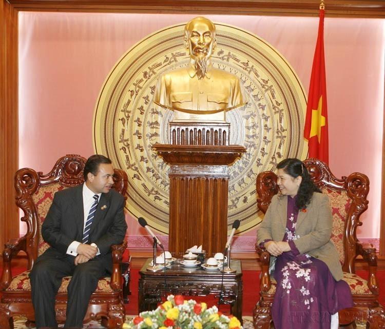 Phó Chủ tịch Quốc hội Tòng Thị Phóng tiếp Chủ tịch Ủy ban Cải cách Nông nghiệp Mexico Ramon Ceja Romero (Hà Nội, 10/2/2009 ). Ảnh: Trí Dũng - TTXVN