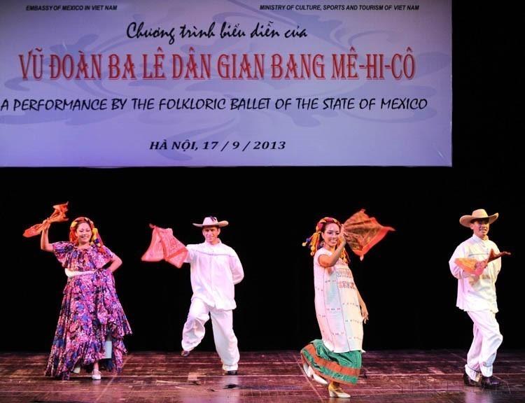 Tiết mục múa đặc sắc do các nghệ sĩ của vũ đoàn ba-lê dân gian Mexico biểu diễn tại Đêm biểu diễn nghệ thuật ba-lê dân gian Mexico nhân kỷ niệm 38 năm Ngày thiết lập quan hệ ngoại giao giữa hai nước (Hà Nội, 17/9/2013). Ảnh: Minh Đức - TTXVN
