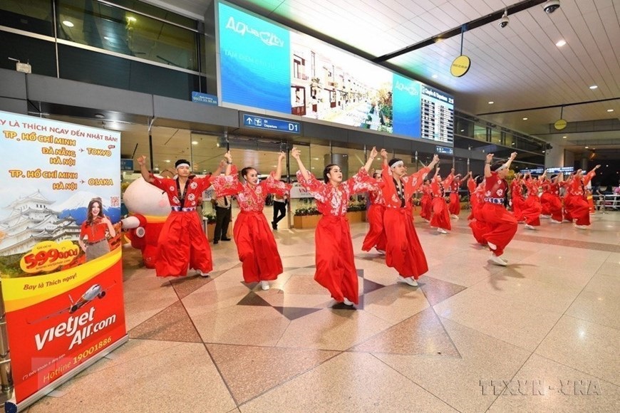 Hãng hàng không thế hệ mới Vietjet chính thức khai trương đường bay kết nối Thành phố Hồ Chí Minh với thành phố Osaka (Nhật Bản), góp phần thúc đẩy du lịch, giao thương và hội nhập giữa hai quốc gia. (Ảnh: TTXVN phát)