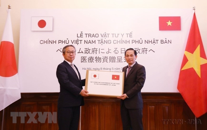Bộ Ngoại giao tổ chức lễ trao vật tư y tế của Chính phủ Việt Nam hỗ trợ Chính phủ và nhân dân Nhật Bản phòng, chống dịch COVID-19 (8/5/2020). (Ảnh: Lâm Khánh/TTXVN)