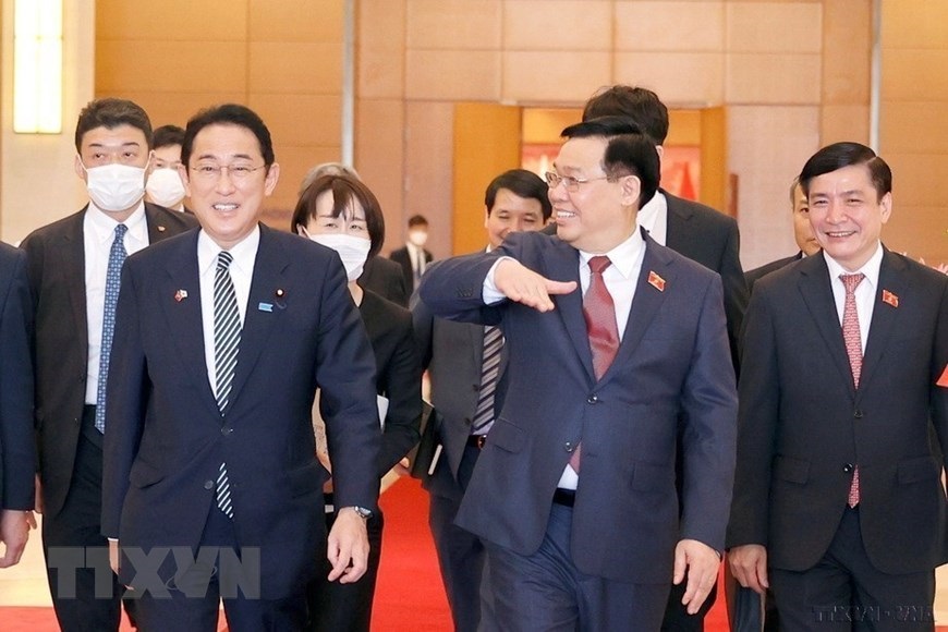 Chủ tịch Quốc hội Vương Đình Huệ hội kiến Thủ tướng Nhật Bản Kishida Fumio thăm chính thức Việt Nam (Hà Nội, 1/5/2022). (Ảnh: TTXVN)