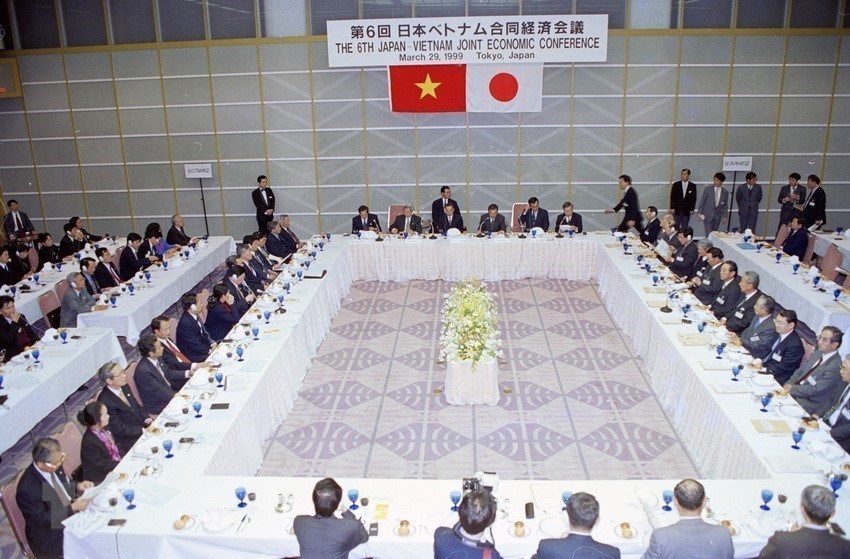 Thủ tướng Phan Văn Khải tham dự Phiên họp của Ủy ban Hỗn hợp Kinh tế Việt Nam-Nhật Bản, trong chuyến thăm chính thức Nhật Bản (năm 1999). (Ảnh: Thế Thuần/TTXVN)