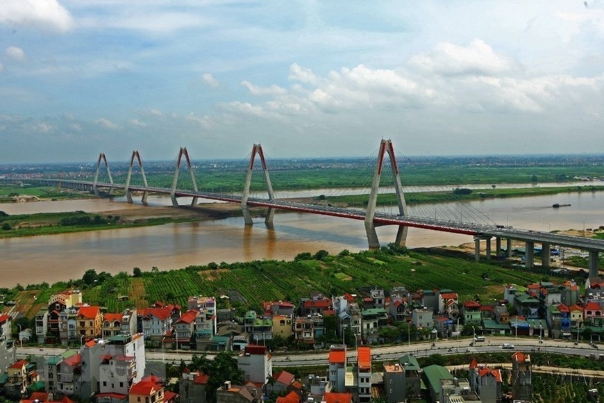 Cầu Nhật Tân - cây cầu được xây dựng bằng nguồn vốn ODA của Nhật Bản. (Ảnh: Huy Hùng/TTXVN)