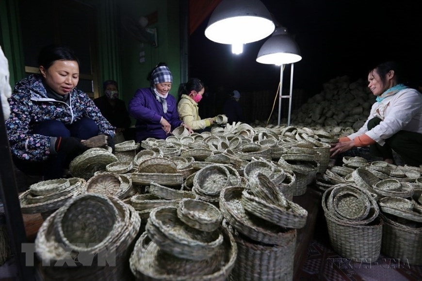 Sản xuất hàng mây tre đan, thủ công mỹ nghệ xuất khẩu sang thị trường châu Âu, Nhật Bản tại Công ty Trách nhiệm Hữu hạn Sản xuất và Đầu tư Thành Hóa, xã Khánh Nhạc, huyện Yên Khánh, tỉnh Ninh Bình. (Ảnh: Trần Việt/TTXVN)