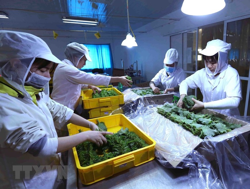 Công ty Cổ phần May Hồ Gươm đầu tư trồng tía tô xanh lấy lá xuất khẩu sang thị trường Nhật Bản. (Ảnh: Vũ Sinh/TTXVN)