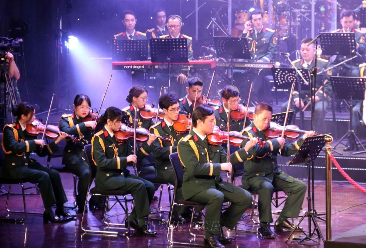 Các nghệ sĩ Giàn nhạc Giao hưởng Quân đội biểu diễn tại Chương trình (21/4/2025). Ảnh: Xuân Khu-TTXVN