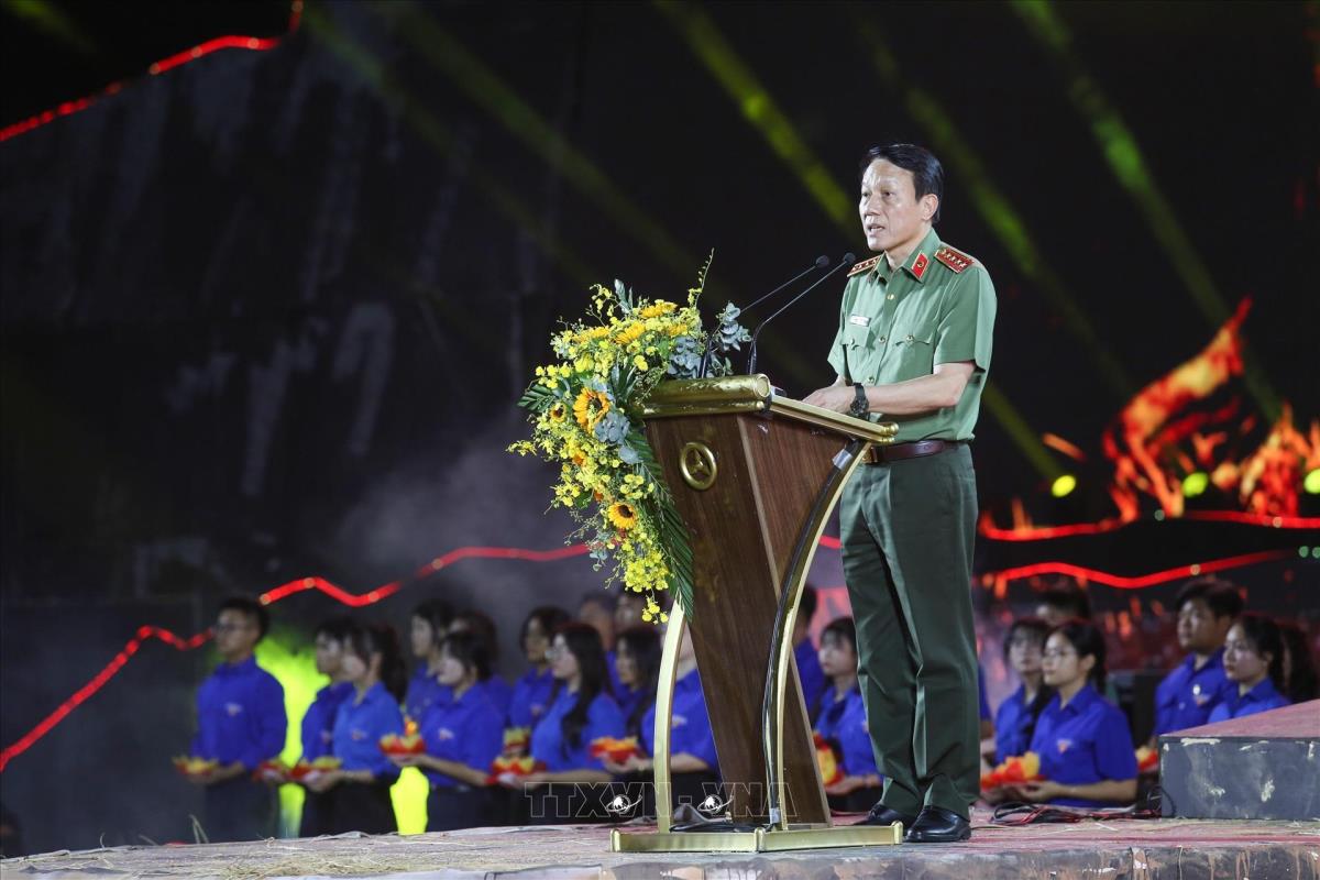Đại tướng Lương Tam Quang, Ủy viên Bộ Chính trị, Bộ trưởng Bộ Công an phát biểu tại chương trình (19/4/2025). Ảnh: Giang Phương – TTXVN