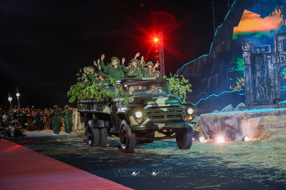 Chương trình nghệ thuật tái hiện các giai đoạn lịch sử hào hùng (19/4/2025). Ảnh: Giang Phương - TTXVN