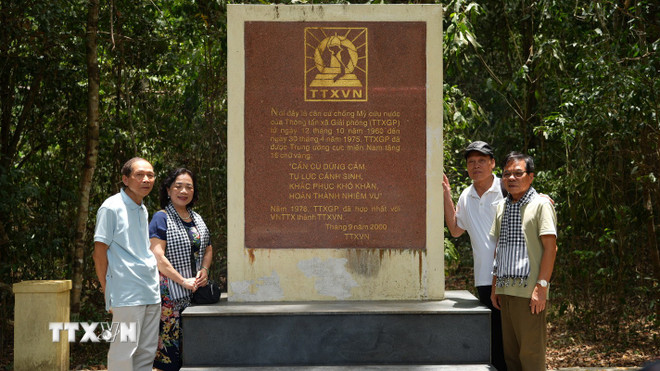 Trên Bia tưởng niệm khắc 16 chữ vàng do Trung ương Cục miền Nam tặng Thông tấn xã Giải phóng lúc bấy giờ là: "Cần cù, dũng cảm, tự lực cánh sinh, khắc phục khó khăn, hoàn thành nhiệm vụ"./.
