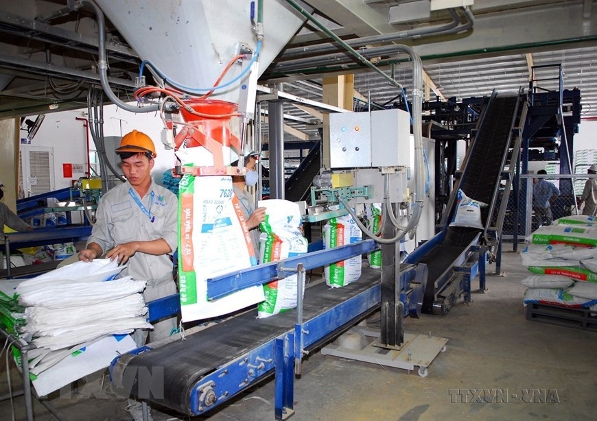 Sản xuất thức ăn gia súc, gia cầm và thủy sản tại Công ty TNHH DE HEUS (100% vốn đầu tư của Hà Lan) ở Vĩnh Phúc. (Ảnh: Danh Lam/TTXVN)