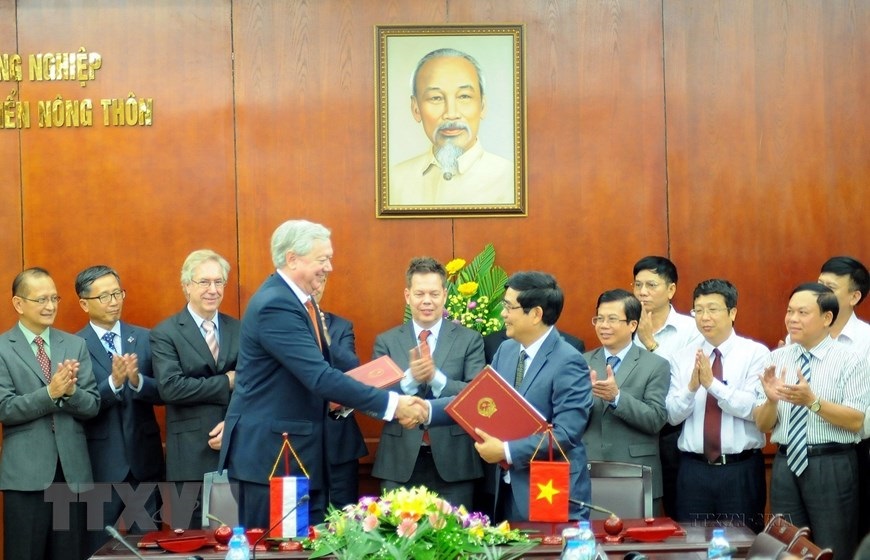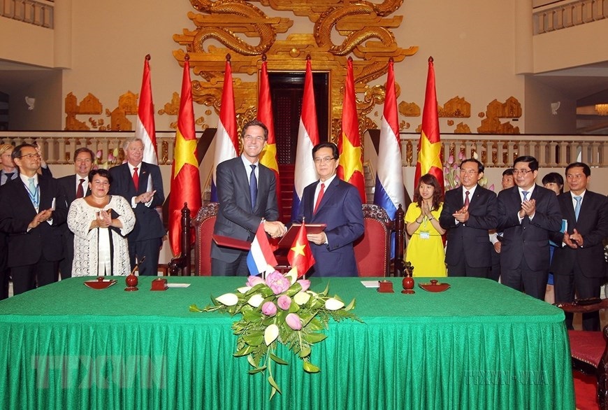 Ngày 4/10/2010, bên lề Hội nghị Cấp cao Á-Âu (ASEM) lần thứ 8 tại tại Brussels (Bỉ), Thủ tướng Nguyễn Tấn Dũng và Thủ tướng Hà Lan Jan Peter Balkenende ký Thỏa thuận Đối tác Chiến lược trong quản lý nước và ứng phó với biến đổi khí hậu, đưa quan hệ hợp tác song phương trong lĩnh vực này lên tầm cao nhấ. (Ảnh: Đức Tám/TTXVN)