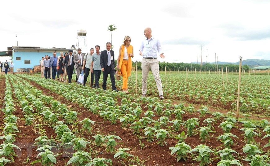 Ngày 30/5/2017, trong chuyến thăm Việt Nam, Hoàng hậu Hà Lan Maxima tham quan thực tế mô hình sản xuất nông nghiệp sạch ở huyện Đơn Dương và thành phố Đà Lạt (Lâm Đồng). (Ảnh: Nguyễn Dũng/TTXVN)