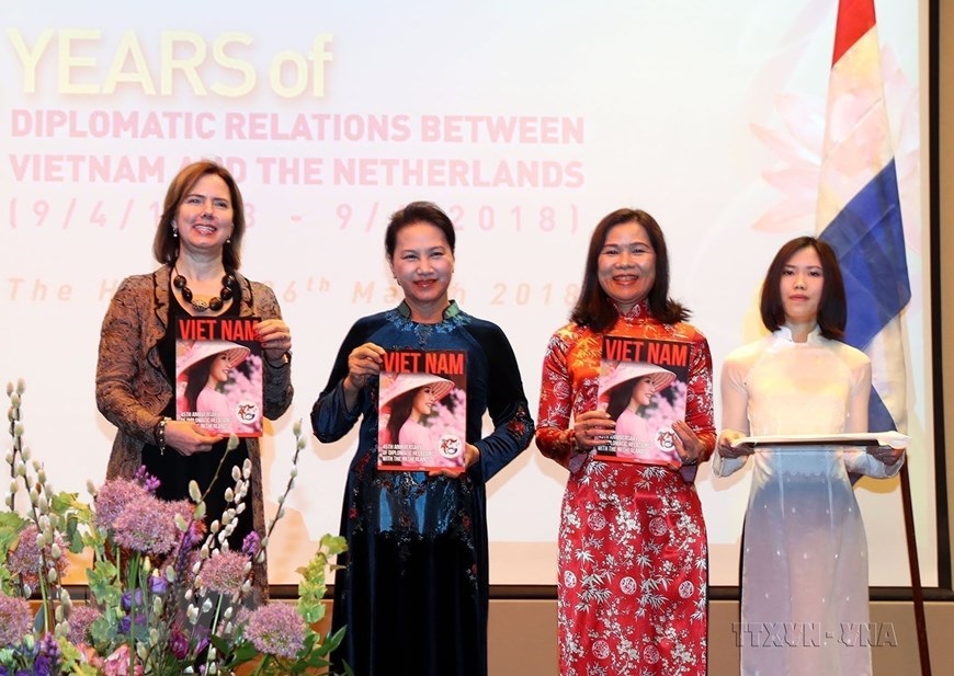 Chủ tịch Quốc hội Nguyễn Thị Kim Ngân dự Lễ kỷ niệm 45 năm Ngày thiết lập quan hệ ngoại giao Việt Nam-Hà Lan (Amsterdam, 26/3/2018). (Ảnh: Trọng Đức/TTXVN)