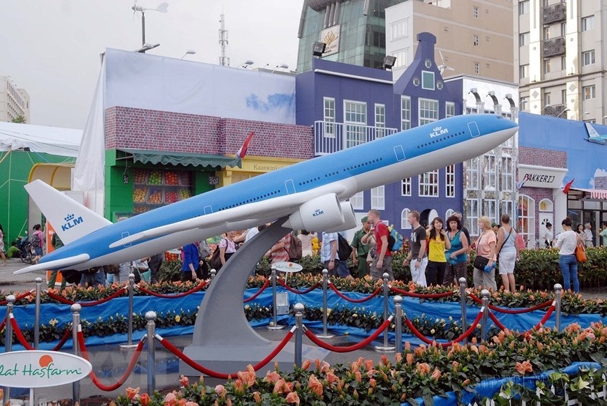 Biểu tượng mô phỏng sân bay Schiphol tại sự kiện “Ngôi làng Hà Lan 2013” ở Công viên 23/9, do Tổng Lãnh sự Quán Hà Lan tại TP. Hồ Chí Minh tổ chức từ 22/11-1/12/2013. (Ảnh: Mạnh Linh/TTXVN)