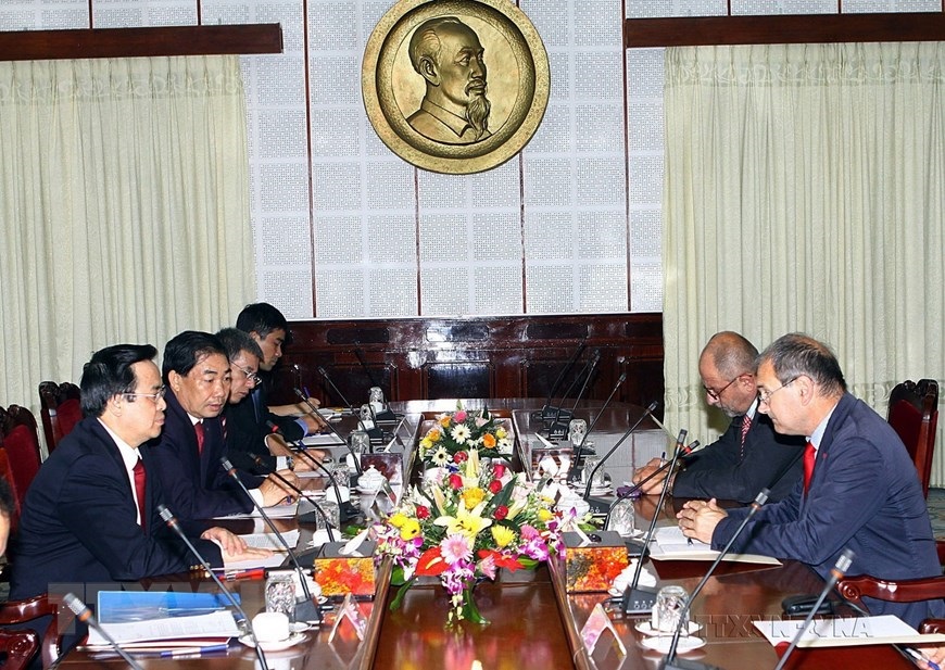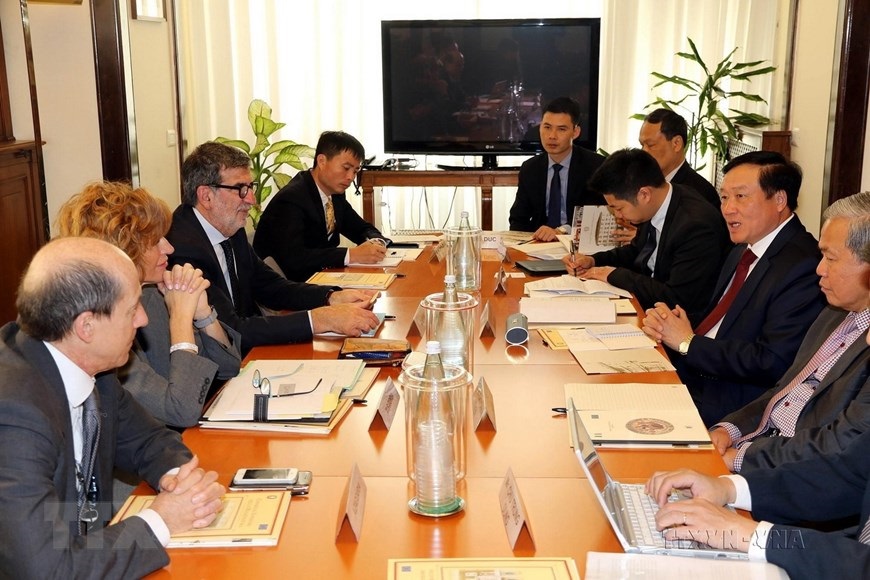Bí thư Trung ương Đảng, Chánh án Tòa án nhân dân Tối cao Nguyễn Hòa Bình làm việc với Hội đồng Tư pháp Tối cao Italy trong chuyến thăm Italy từ ngày 9-14/5/2017. (Ảnh: Ngự Bình/TTXVN)