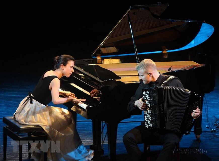 Đại sứ quán Italy tại Việt Nam phối hợp cùng Quỹ IBLA tổ chức hòa nhạc đặc biệt nhân kỷ niệm 45 năm thiết lập quan hệ ngoại giao Việt Nam-Italy, Hà Nội, 16/3/2018. (Ảnh: Thanh Tùng/TTXVN)