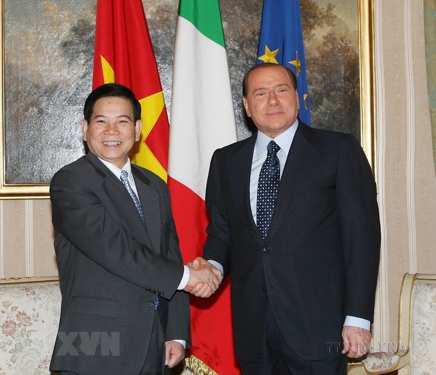 Thủ tướng Silvio Belusconi đón và hội đàm với Chủ tịch nước Nguyễn Minh Triết thăm cấp Nhà nước Italy từ 9-13/12/2009. (Ảnh: Nguyễn Khang/TTXVN)