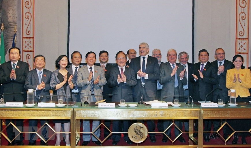 Trong chuyến thăm chính thức Italy, ngày 21/3/2014, tại Rome, Chủ tịch Quốc hội Nguyễn Sinh Hùng dự Lễ ra mắt Nhóm Nghị sỹ hữu nghị Italy-Việt Nam. (Ảnh: Nhan Sáng/TTXVN)