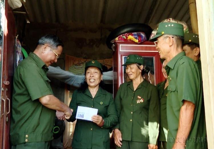 Hội Cựu Thanh niên xung phong tỉnh Quảng Bình (nay là tỉnh Quảng Trị) trao tiền hỗ trợ các cựu TNXP có hoàn cảnh khó khăn vươn lên trong cuộc sống. Ảnh: TTXVN phát