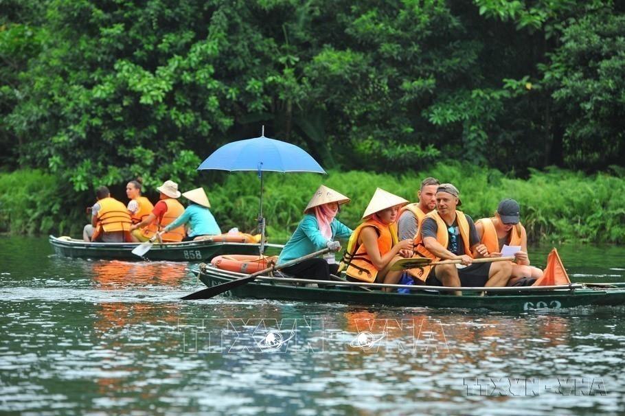 Du khách trong và ngoài nước tham quan khu du lịch Tràng An (Ninh Bình). Ảnh: Minh Đức - TTXVN