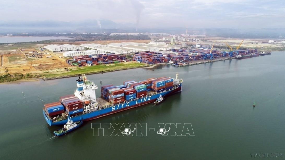 Tàu 22.000 tấn vào bốc xếp hàng hóa tại cảng Chu Lai, thuộc Công ty TNHH Một thành viên Cảng Chu Lai – Trường Hải (Quảng Nam). Đây là cảng nước sâu có hệ thống logistic đồng bộ, diện tích 140 ha, được đưa vào hoạt động từ tháng 5/2012, là cảng sông có quy mô lớn duy nhất tại miền Trung, góp phần phát triển lưu thông hàng hóa của khu vực. Ảnh: Danh Lam – TTXVN