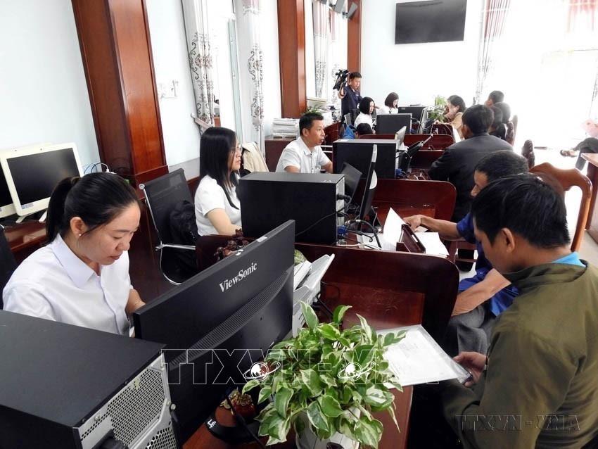 Việc sáp nhập tỉnh, thành và tổ chức lại bộ máy là "bước đi lịch sử", đánh dấu giai đoạn phát triển mới trong xây dựng nền hành chính hiện đại, tinh gọn, hiệu lực, hiệu quả của Việt Nam. Trong ảnh: Hoạt động tại Trung tâm hành chính công của xã Bờ Y. Những năm qua, xã Bờ Y luôn quan tâm giúp dân an cư, phát triển kinh tế (Quảng Ngãi, 19/08/2025). Ảnh: Cao Nguyên - TTXVN