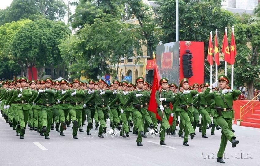 Màn diễu binh của khối Cảnh sát điều tra tội phạm kinh tế tại “Ngày hội Vì Thủ đô bình yên” do Công an thành phố Hà Nội tổ chức (10/8/2025). Ảnh: Phạm Kiên - TTXVN