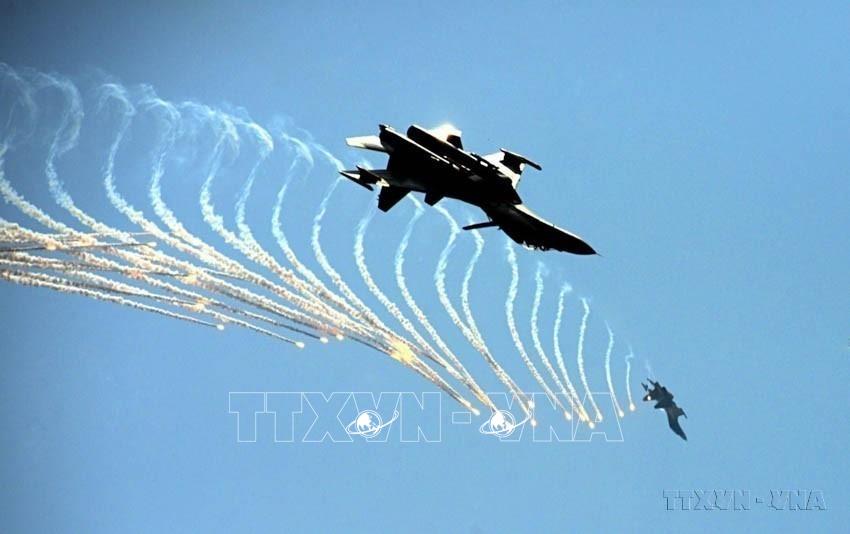 Màn trình diễn phun bẫy nhiệt của máy bay tiêm kích Su-30MK2 tại Lễ diễu binh, diễu hành kỷ niệm 50 năm Ngày Giải phóng miền Nam, thống nhất đất nước (30/4/1975 – 30/4/2025). Ảnh: Mạnh Linh - TTXVN