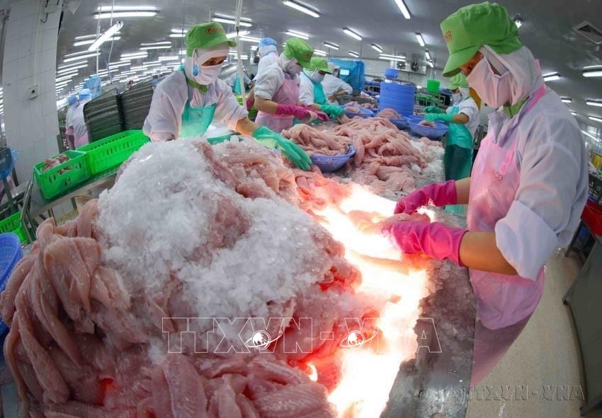 Nhờ thực hiện đường lối đổi mới, Việt Nam từ một nước nghèo nàn, kết cấu hạ tầng kinh tế - xã hội lạc hậu đã trở thành nước đang phát triển có thu nhập trung bình, hội nhập sâu rộng vào nền kinh tế khu vực và toàn cầu. Trong ảnh: Phân loại sản phẩm cá tra phi lê ở nhà máy của Công ty CP Chế biến thuỷ sản Gò Đàng, khu công nghiệp Mỹ Tho, thành phố Mỹ Tho, tỉnh Tiền Giang. Ảnh: Vũ Sinh – TTXVN