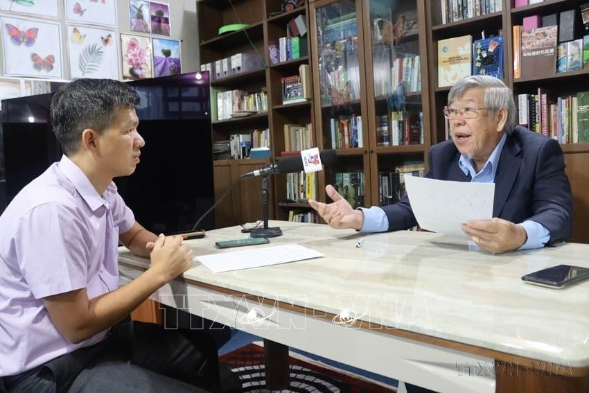 Giáo sư, Tiến sỹ Hoo Ke Ping, chuyên gia phân tích chính trị, kinh tế uy tín tại Malaysia trả lời phỏng vấn phóng viên TTXVN tại Kuala Lumpur. Ảnh: Mạnh Tuân-TTXVN