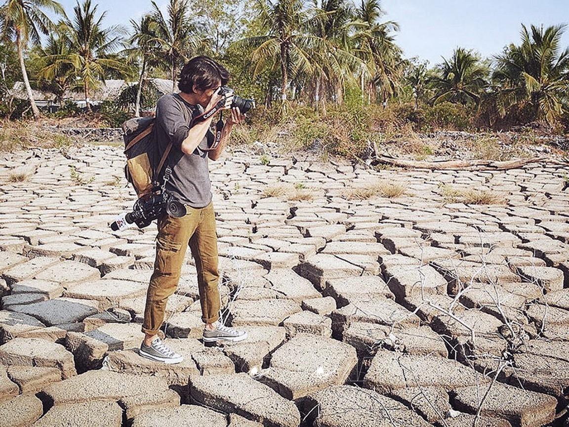 Phóng viên Huỳnh Anh của TTXVN ghi lại hình ảnh hạn hán tại huyện Trần Văn Thời, Cà Mau, tháng 4/2020. Ảnh: TTXVN