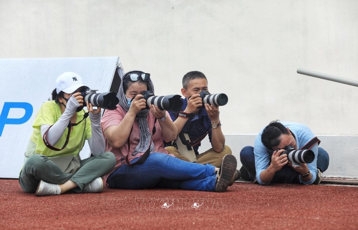 Nhóm phóng viên Ban Biên tập Ảnh (TTXVN) tác nghiệp tại Đại hội Thể thao Đông Nam Á lần thứ 31 (SEA Games 31) được tổ chức tại Việt Nam. Ảnh: TTXVN